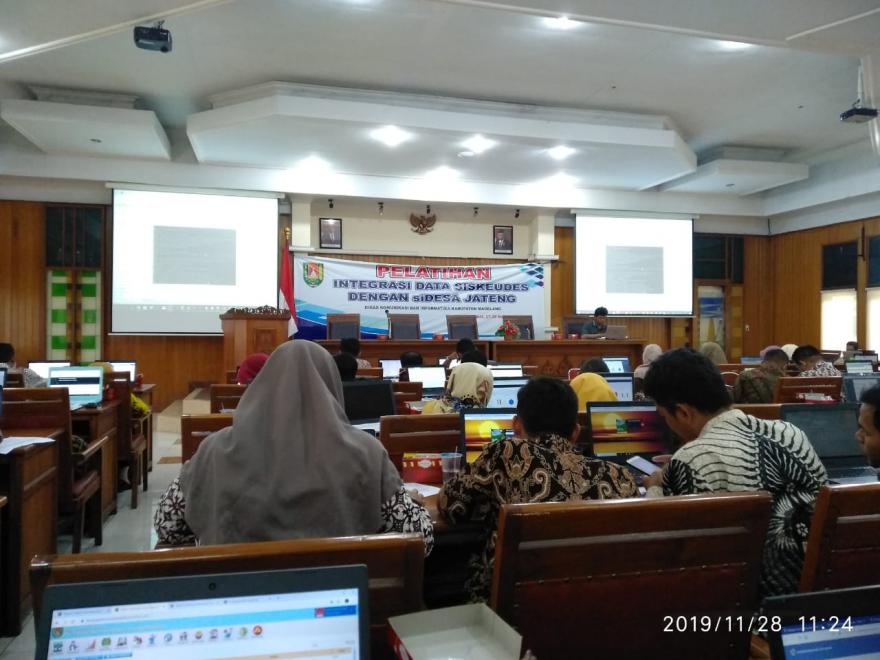 Dinas Komunikasi dan Informatika Kabupaten Magelang melaksanakan Pelatihan Integrasi Data Siskeudes dengan siDESAJATENG bagi operatir SIDesa Se Kabupaten Magelang selama dua hari, rabu dan kamis tanggal 27-28 November 2019.