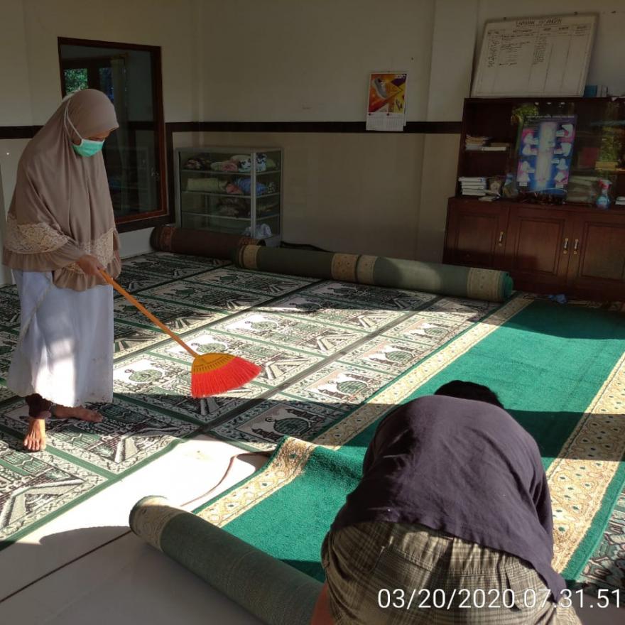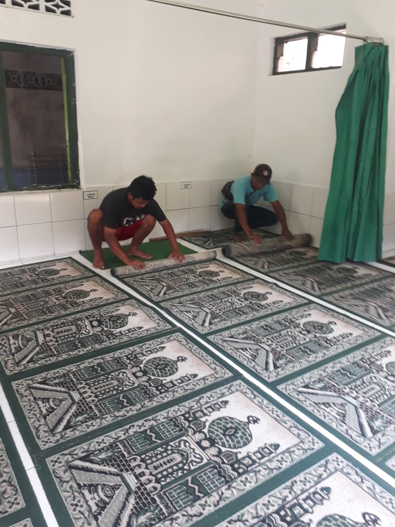 Selain pembersihan juga penggulungan karpet masjid dan mushola. untuk sementara jamaah bisa membawa sajadah sendiri dari rumah.