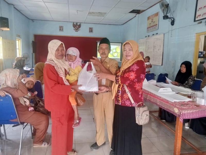 Dalam kegiatan ini Kepala Desa Pagersari, Bapak Sri Mulyanto memberikan bantuan berupa Susu kambing etawa, telur dan abon kepada Balita yang terindikasi stunting.