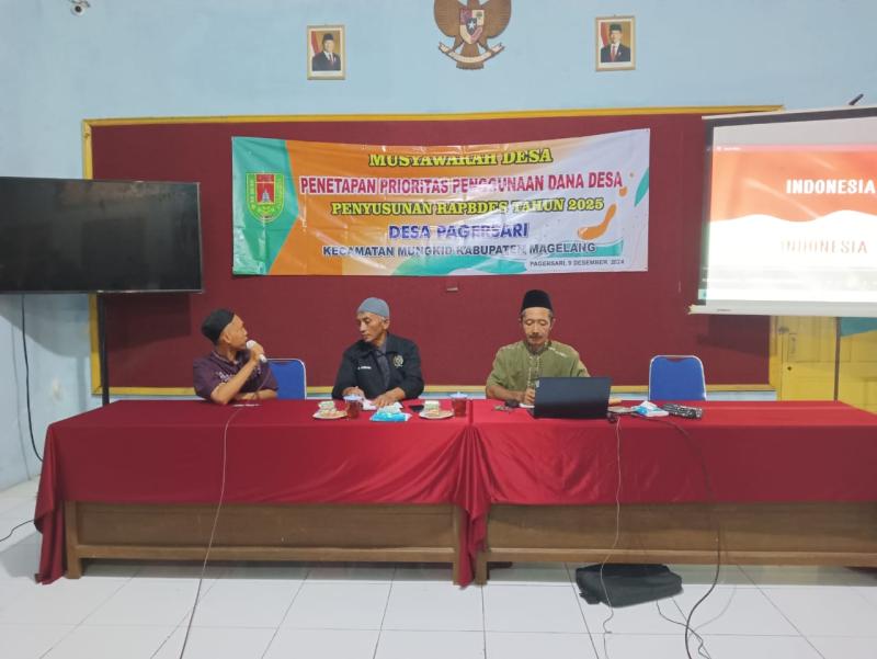 Dalam Musyawarah Desa yang dihadiri Anggota BPD, Perangkat Desa, Pengurus TP PKK, Pengurus LPMD, Pengurus Karang Taruna, Ketua RW dan Perwakilan Ketua RT, Tokoh Masyarakat Serta Kader Posyandu pada tanggal 9 Desember 2024 bertempat di Aula Balai Desa Pagersari/