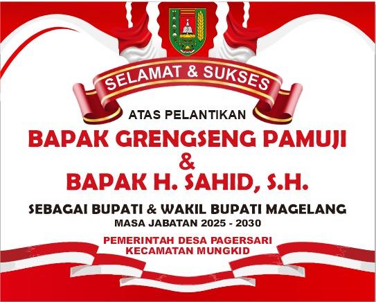 SELAMAT DAN SUKSES ATAS PELANTIKAN BAPAK GRENGSENG PAMUJI DAN BAPAK H. SAHID, SH. SEBAGAI BUPATI DAN WAKIL BUPATI MAGELANG MASA JABATAN 2025 - 2030