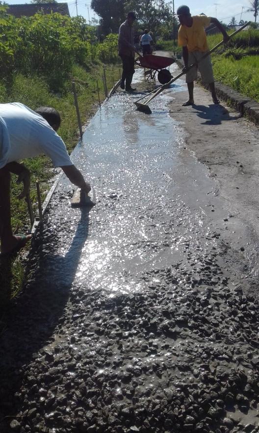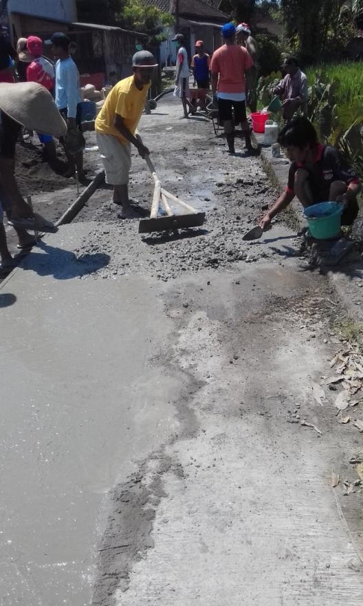 Proses pekerjaan dilakukan secara padat karya oleh warga Dusun Jetis.