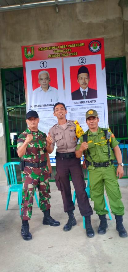 Babhinkamtibmas Desa Pagersari Brigadir Agus Tamtomo dari Polsek Mungkid dan Babinsa dari Koramil Mungkid siap membantu Satlinmas dan melakukan pendampingan selama Kegiatan Pilkades di Desa Pagersari.